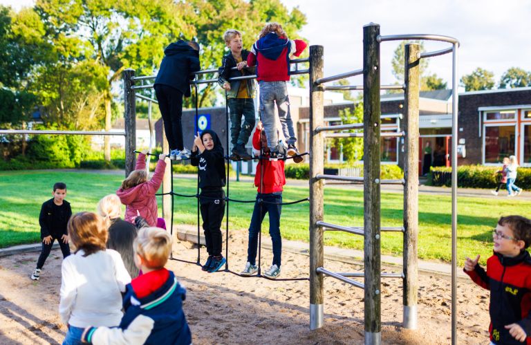 Na de lunch spelen de kinderen een half uur, van 12.15 uur tot 12.45 uur, buiten onder begeleiding van personeelsleden en pedagogisch medewerkers. Elke leeftijdsgroep heeft een aparte speelplek. De leerkrachten hebben op dat moment pauze. We vinden het belangrijk dat kinderen lekker kunnen ontspannen tussen de middag en intensief kunnen bewegen.